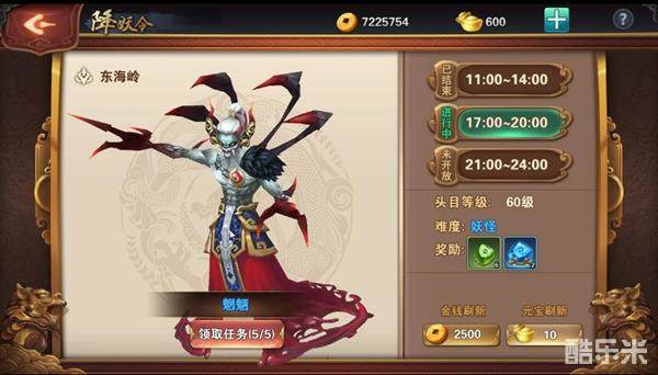 这个副本也是限时副本,一天三个时间段,分别为11:00-14:00,17:00-20:00,21:00-24:00,上限为5次,一共有三个等级,分妖怪,妖魔,凶兽,凶兽奖励最为可观,而且击杀会有额外巨额奖励。