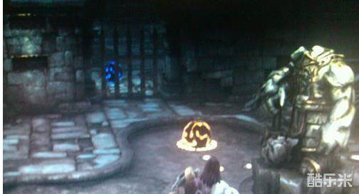 3、在蓝球房间有个高台,爬上去,站在中间的正方形机关上,栅栏就会落下来