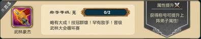 武侠Q传武林豪杰称号是不少的弟子属性加成道具,获得要求是晋级武林大会循环赛即可获得。武侠Q传武林豪杰称号效果是提升弟子上阵属性,效果非常明显。
