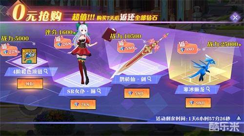 在活动期间,大人可以消耗钻石购买指定的商品,7天后全额原价返还!
