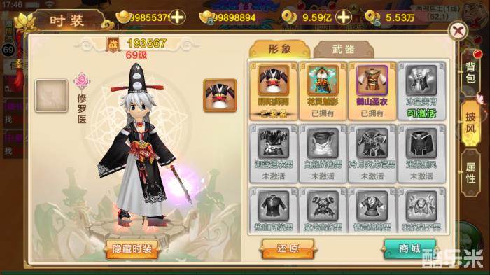 时装除了系统赠送的以外,都只能通过元宝购买。绑元的时装和非绑元的时装各不相同,风格迥异,而且加成也不一样。时装也会分为紫和橙色,绑元只能购买部分紫色时装。元宝可以购买所有时装。