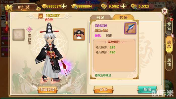 武器时装暂时只有两个,海鲜和蔬菜,海鲜通过特殊活动获得,蔬菜通过武勋商店获得,二者都不可以通过元宝购买。