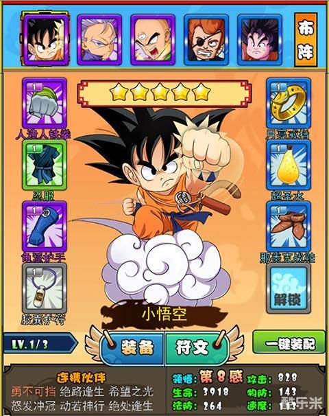 2.装备分为两种,一种是普通装备,分为武器、衣服、护手和项链四个部位,一种是宝物,分为戒指、饰品、战靴三个部位