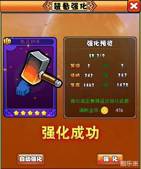 3.装备强化时可能会产生暴击,强化暴击可以提升更多的装备等级
