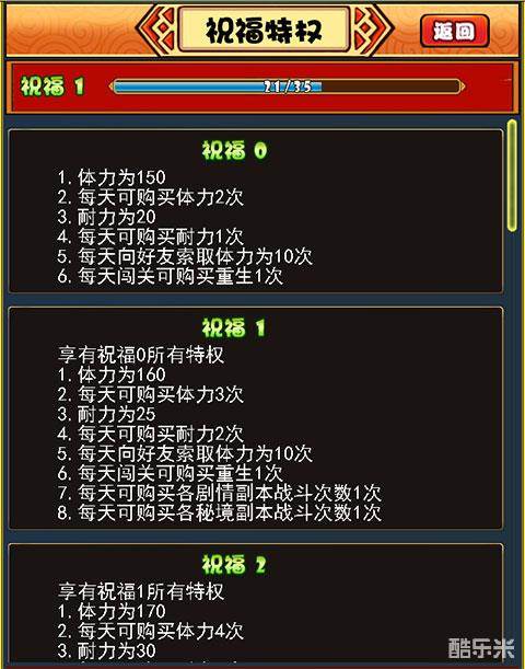 2.累计到相应的祝福积分后可以提升祝福等级,更高的祝福等级可以获得更多的游戏特权