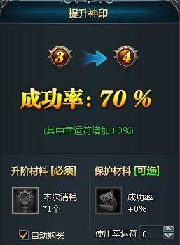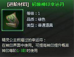 新增道具:新增神印幸运符,可增加神印系统提升成功率。