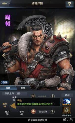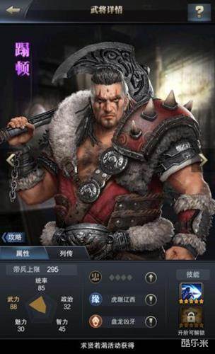 以上就是新紫将蹋顿的介绍了,作为一个非常有潜力的紫将,大家不要错过本次求贤若渴活动蹋顿获取哦!更多精彩内容,尽在《三国群英传-霸王之业》!