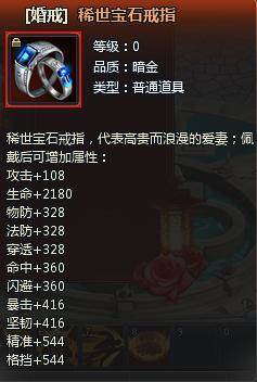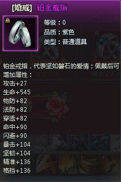 铂金戒指:99999金币,代表坚如磐石的爱情