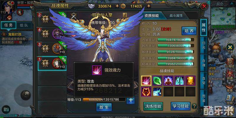 幻师则需要分为雷霆系和幻化系。雷霆系可偏向于法师,用魂力、魂灵、治愈、战意、庇佑、回春、活血+专属。幻师可为自己加血,所以将庇护换成增加角色15%防御的庇佑,再将狂怒换成每攻击一个目标增加自身3%生命值的活血,增加了句芒在团战中的存活能力。
