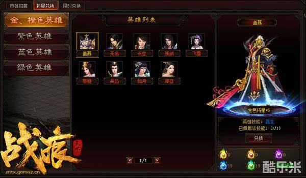 玩家在抽将时获得的将星可以在兑换页面兑换英雄,3个紫色将星可兑换一个紫色英雄、5个金色将星兑换一个金色英雄。