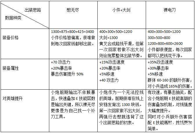 现在综上两种,形成了全新的出装路线,即按照英雄机制,直接出核心装使输出最大化的路线。