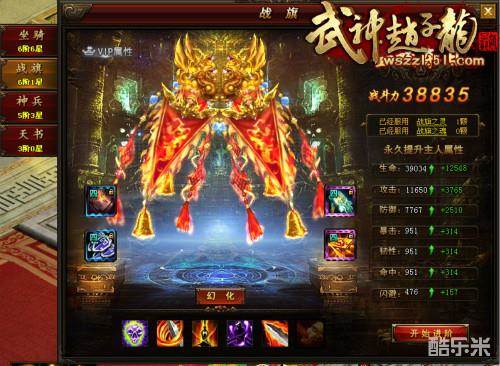 并且,在游戏当中,我们还可以背负战旗,战旗是军队的象征,荣耀的化身,背着华丽战旗在战场上奋勇杀敌是不是更加热血澎湃?没错,51《武神赵子龙》中也可以背负各式战旗,站街,搏斗,统统都是那么拉风。主角到36级,完成对应的主线任务后会开启战旗系统,同时获得大量战旗属性加成,功能开启后可以点击主界面下方战旗按钮打开界面。这样,玩家就能背起战旗潇洒走天下了。