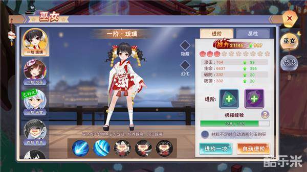 进阶后的巫女会获得全新的外观,让你的生活充满新鲜感,而且,还有颇具现代风格的皮肤幻化哟。