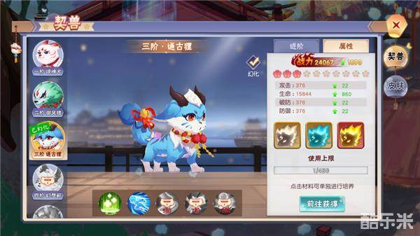 巫女的成长分为两部分,进阶获得新的外观和技能,属性增强拔高战斗力。巫女进阶需要祝福符,蓝色祝福符在巫女副本、运营活动中获得,紫色祝福符就只能参与运营活动了。