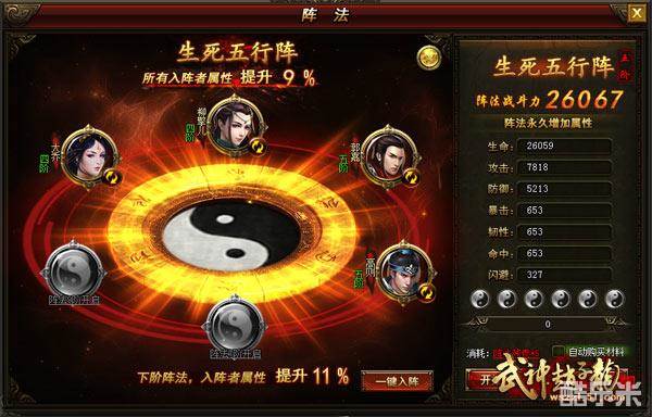 对于战力的提升或者刷怪的速度,如果总是一点点慢慢提升培养值,相信久而久之会感到不耐烦,所以将阵法设计为在进阶过程中会有几率触发“突进”效果,一旦触发将会获得大量培养值,而且当进度条满后还可激活一颗星,同时获得部分属性加成,如果有玩家将6颗星全部激活,那么恭喜你!阵法将成功升阶至下一阶段,同时获得大量属性加成。强者之路从不停的战斗开始,51游戏将是你最好的开始。