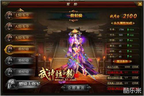 在三国时代,文官武将都需凭借功劳提升地位;而在51《武神赵子龙》,提升军阶也是一样!51《武神赵子龙》玩家必须达成军阶激活的所有条件,一步一个脚印的提升军阶等级、获得高级属性。为了增强系统可玩性,51《武神赵子龙》军阶激活条件设置也是涉猎广泛,等级达标、战力达标、强化达标、技能提升、武将阵图……引领玩家全面提升,51《武神赵子龙》军阶长耀九天!