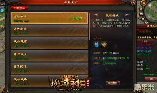 《魔域永恒》激情泡点是游戏的特色活动,每天在活动时间内占据一些据点就可以获得大量的功勋值和经验奖励,更有高达五倍的奖励,还等什么,快跟小编一起来了解下51《魔域永恒》激情泡点把!