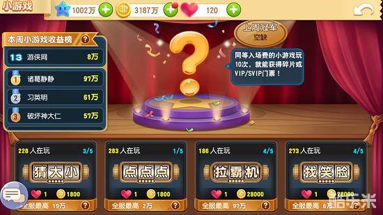 小游戏每天都可参加,VIP等级越高,参加次数越多。运气好的话,一天收获的金币可不少呦。