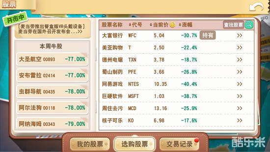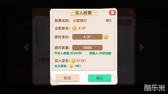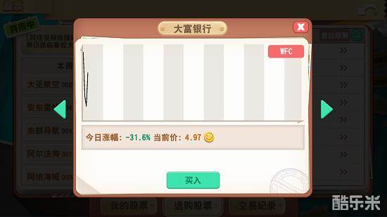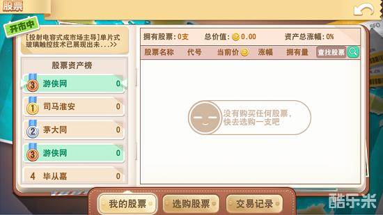 我们在游戏主界面,通过“股市”按钮可进入股市界面。无需进入游戏即可操作。