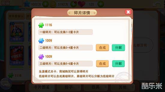 在“更多卡牌”中可以看到游戏中的全部卡牌图鉴,还可以进行碎片的合成。碎片可用来兑换卡牌哦。