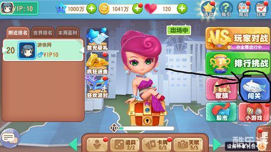 在大富翁9手游中,最基本的玩法是闯关模式,我们需要通过界面右边“闯关”按钮进入。