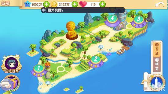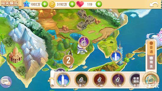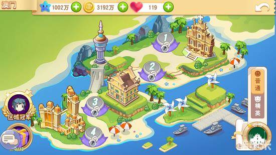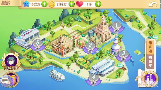 闯关模式中游戏暂时开放了4张地图,分别是台湾、澳门、广州和上海,玩家需要通关前一张地图才能进入下一关卡。每张地图分为普通难度以及精英难度,获胜条件以及奖励随难度增加。