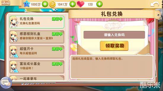 1.礼包兑换:选择礼包类型后,输入兑换码领取礼包。