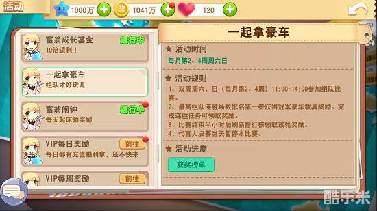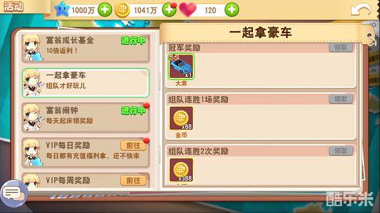 5.一起拿豪车:组队参加比赛,连胜常熟第一可获得冠军豪车。