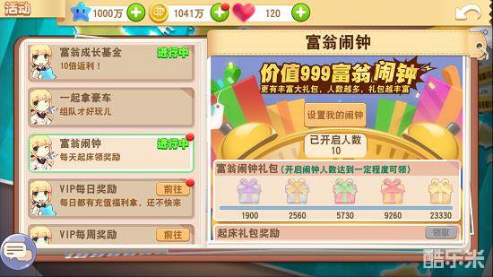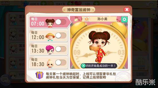 6.富翁闹钟:设置闹钟,上线即可领取豪华礼包。