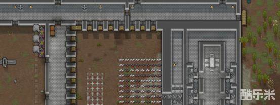 近战区要有桌子和凳子,打完架可以吃饭,照明也是需要的。初期需要2个近战点,后期右边4个近战点足够了,左边的4个近战点是补位用的。近战武器推荐玻璃钢长剑或玻璃钢长矛,品质越好攻击越高。每个一近战区可以站一个近战小人,动物可以用1格区站一起。