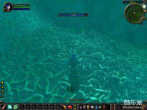 《魔兽世界》在视觉处理上非常细致,月光在照射在水面、在水下的明暗差非常明显。上图中,可以看出从水浅至水深处,水面颜色由淡至深的变化。