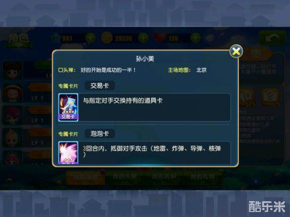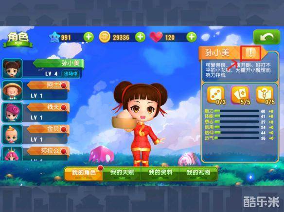 进入游戏中,需要选择一个角色,游戏中有八个游戏角色,分别为大家熟悉的孙小美;阿土伯;钱夫人;金贝贝;莎拉公主;沙隆巴斯;忍太郎;大老千。