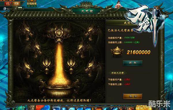 九龙壁在银币累积达上限前,每分钟都会累积银币。玩家随时都可以打开九龙壁领取累积银币!致富之路,如此简单!