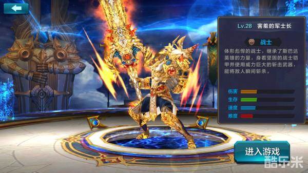 战士是三个职业中唯一的男性角色,体形彪悍,气势凌人。游戏中设定战士继承了英雄斯巴达的力量,从其着装可以看得出来,该角色拥有着极强的防御力,在游戏的团战中可以充当肉盾和主要输出的角色。