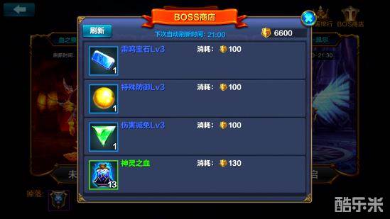 BOSS金币可以在BOSS商店中使用,可以购买各种稀有的宝石与神灵之血。宝石可以镶嵌,赋予装备特殊的属性,神灵之血可以直接用于血脉的激活。