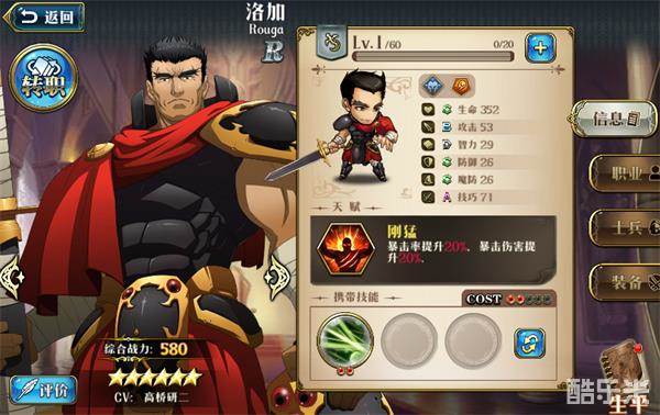 天赋和技能极其霸道。洛要么是暴力提升输出的技能,要么是提高移动能力的技能,要么是提高生存能力的技能。没有功能重复的技能,只可惜不能全部带上。还算过得去的主属性。虽然防御端能力低下,但是洛加攻B技A,在输出端成长达到了普通SR的水平,这一点上比大部分R卡要优秀。拥有强力的兵种影侍。高爆率还附加固定伤害,已经算是刺客兵种里的输出的佼佼者了,正好弥补洛加相对较低的攻击。