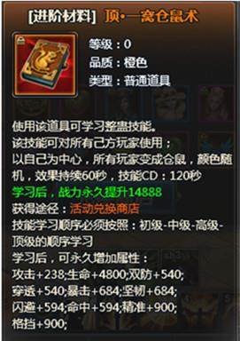 技能学习顺序必须按照:初级——中级——高级——顶级的顺序学习技能