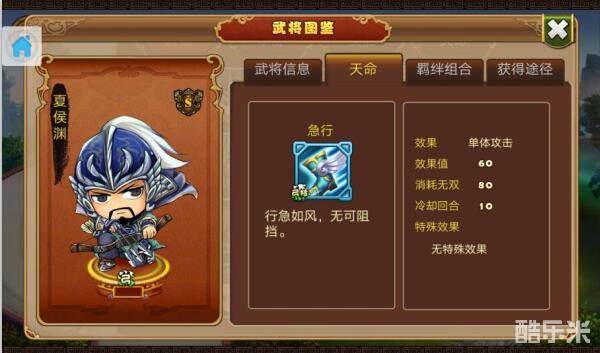 在《乱世争锋》中,夏侯渊是曹魏枭雄阵营的弓职业S级武将,弓职业的英雄别说在曹魏枭雄中仅仅夏侯渊1个,就是在游戏内的所有英雄中,弓职业的都很少呢!相当于特种兵一样的稀少!夏侯渊的天命技“急行”属于单体攻击,杀伤力大,且冷却时间短,消耗的无双值也相对少,属于单体ADC,可以重点保护一下哦!