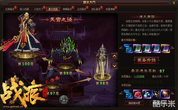 在哥们网《战痕天下》通天帝国副本中,只有逢十的关卡会有大BOSS,其余的关卡都是5到7个的怪物,越是高处的关卡,场景内的怪物就越非常的强大、BOSS也更是异常凶险。那么正确的闯关姿势是什么呢?