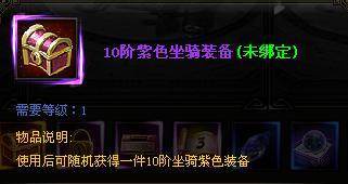 2、副本大厅—王权副本,不同等级的副本掉落对应的3-10阶紫色坐骑装备。