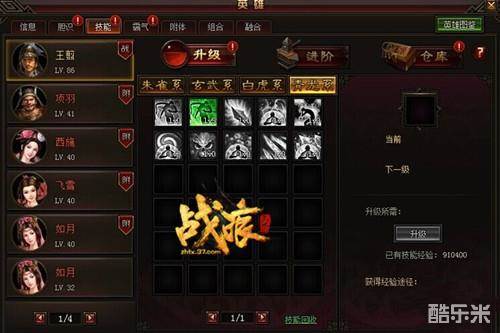 2、《战痕天下》的技能转移:将英雄技能,拖入技能仓库,再将英雄选定为你想要获得这个技能的英雄,从仓库把技能拖出来,就实现了技能转移。