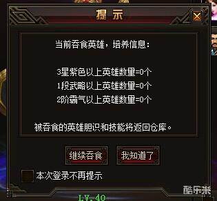 这样就可以经验最大化了,但是记住一点,试炼一次需要1W的铜钱,这个方法也就是拿钱换经验,如果说想要慢慢培养的话也可以不吞,因为这个试炼给予的经验是根据武将当前等级来计算的,养肥了在吃其实是收益最大化的选择。