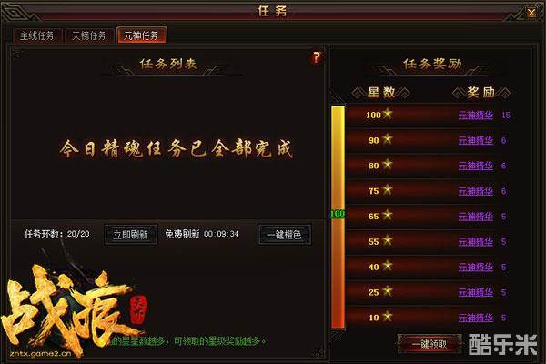 元神任务玩家每天可以做20次,建议玩家刷出橙色任务再接受,可以满星过关获得约600的元神。