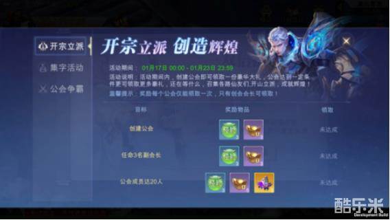 创建公会 | 低级经验丹*3、绑定元宝*300 |