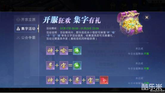 开服前七天,消灭小怪即可获得大量集字卡片,集齐一定数量卡片即可在集字有礼活动中兑换奖励: