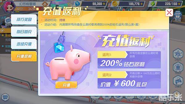 活动介绍:内测期所有充值在公测时都将得到200%的钻石返利!