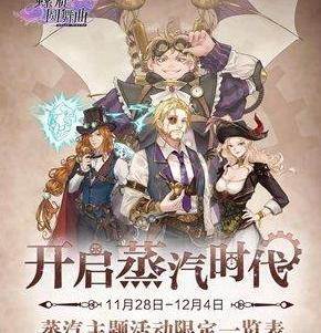 11月28日—12月4日,小可爱们进入游戏活动界面,即可通过活动任务及酒馆比美,获得主题限定舞伴及相应主题套装~活动期间消耗钻石及充值还有活动福利哦!请进入你的蒸汽时代吧~ヾ(◍°∇°◍)ノ゙