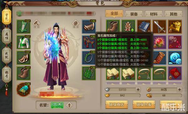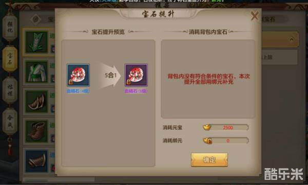 首先是商城可以购买1-3级的宝石,元宝和绑定元宝都可以。