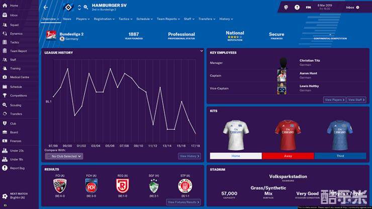 很少有第二级别联赛的球队坐拥可容纳67000人的主场(压根就没有)。而且汉堡目前的境况,可谓绝无仅有。球队历史第一次降入次级联赛,“德甲恐龙”没有时间再去回味六座德甲冠军和一座欧冠奖杯了。他们现在身处德乙,FM2019首度获得该联赛正式版权。