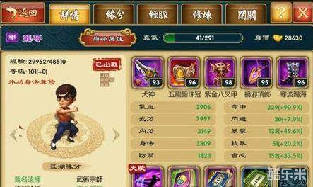 现在说说缘分相关的知识,第一个是与陈真同时出战就能获得41%的武力提升,这个缘分尽量开启,能够增加不少实力。与叶问同战时增加39%身法,这和伤害方面也有关系,多的话还能优先出手。佩戴上双截棍可以增加158暴击,穿戴上五龙盘珠冠就能获取33%武力值。寒波踢海如果你拥有那就可以增加身法31%,从这些缘分中就可以看出,这样的弟子绝对是高伤害位置,玩家重点培养后就能比神级弟子还要强。
